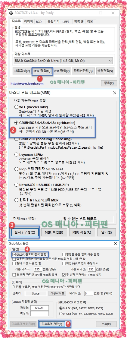 grub4dos 를 심어주셔야 할경우 는 아래와 같이 해주시면 됩니다.
